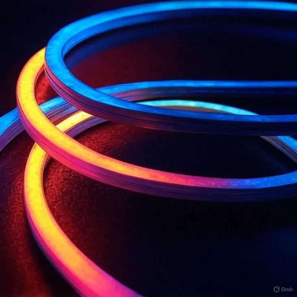 Уличные зоны, выставки, инсталляции — смарт-неон расширяет возможности: управление дистанционно, изменение цвета под событие, синхронизация с аудио.
